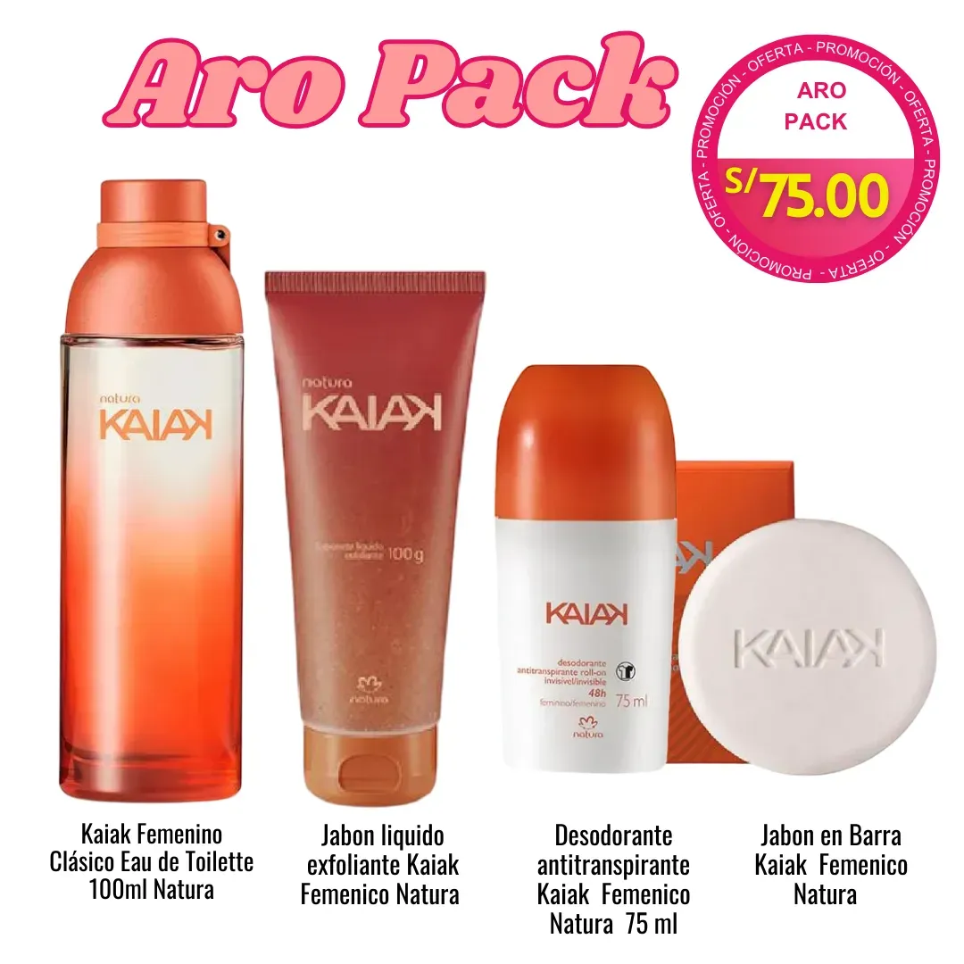 Pack Kaiak Femenino Perfueme + Jabon exfoliante + Desodorante roll on + Jabon